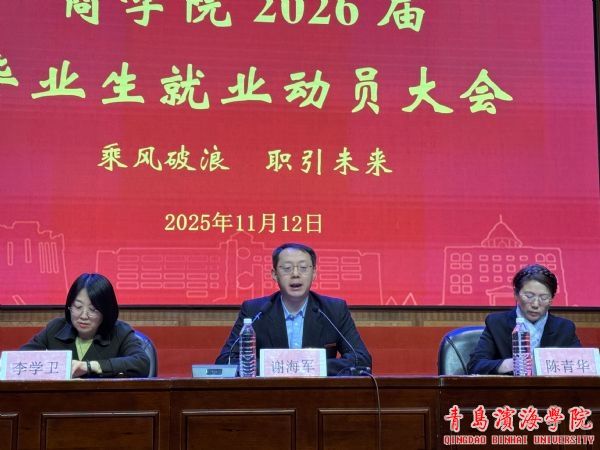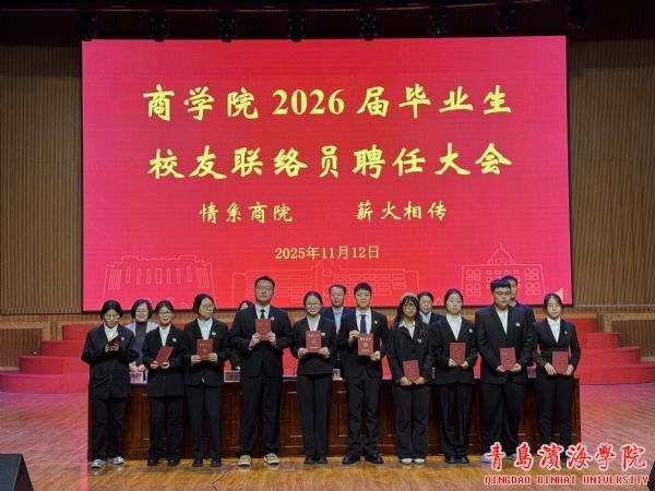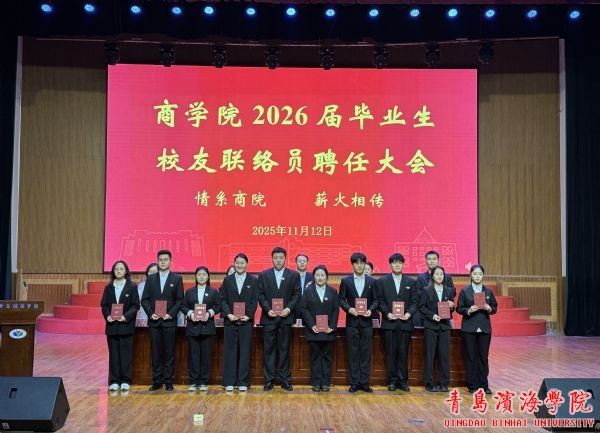 为凝聚校友力量,推动2026届毕业生高质量就业,2025年11月12日,商学院在学校大礼堂举行2026届毕业生校友联络员聘任大会暨就业动员大会。会议由商学院副院长于艺主持,校长助理兼商学院院长谢海军、学校校友办公室主任陈青华、教学干事李学卫、学生干事穆圣涛以及毕业班班主任、2026届毕业生代表共同参会。